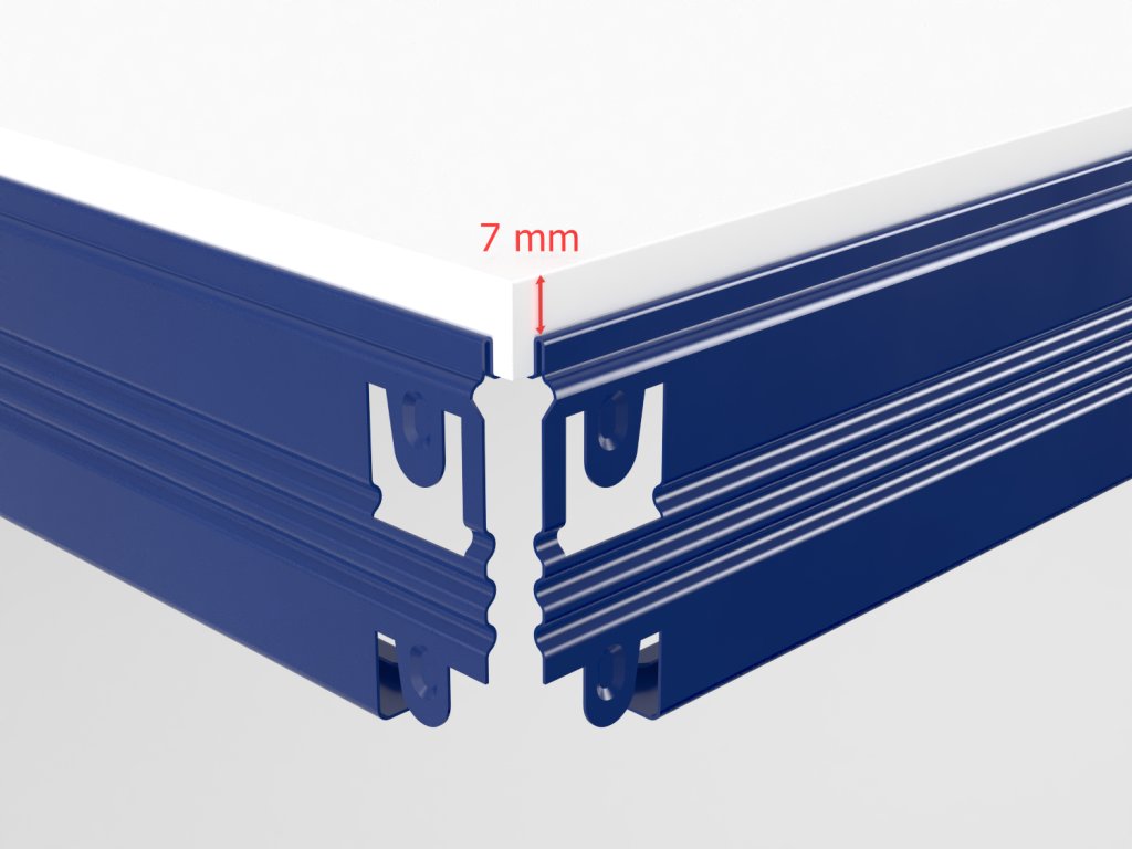 - Výška patra je 64 mm (police přesahuje horní hranu nosníků o 7 mm)
