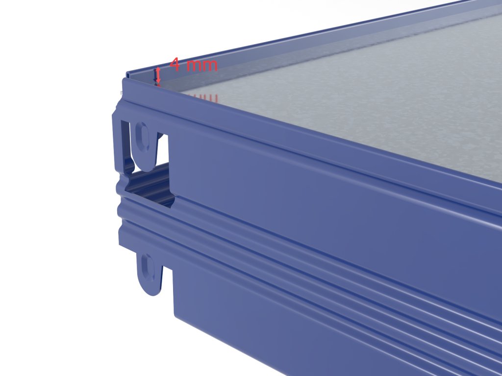 - Výška patra je 56 mm (police je zapuštěna a tvoří 4mm ochranný okraj)