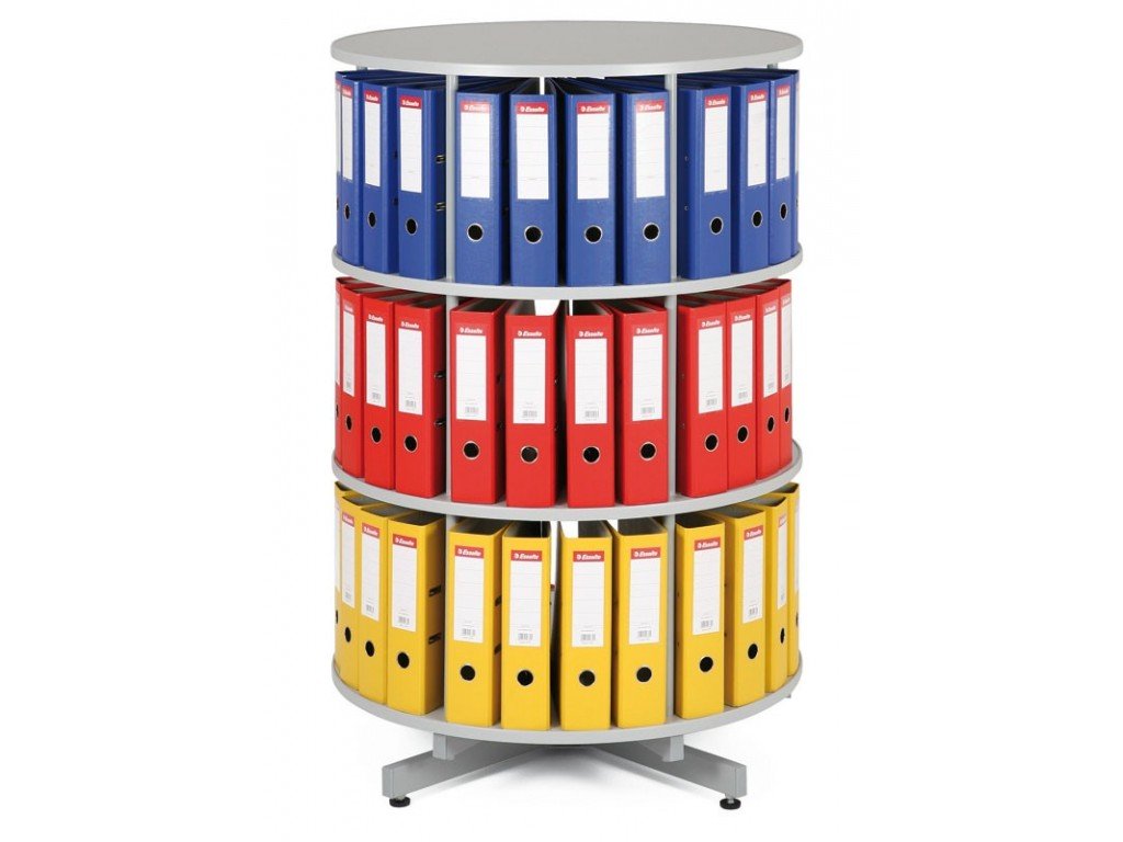 Regál na šanony otočný - 3 police, šedá Biedrax AS4000