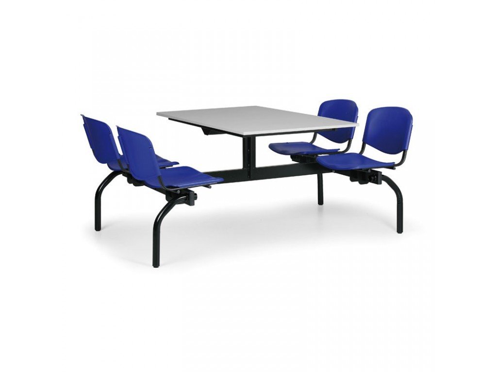 Stoly do školní jídelny Biedrax JS3834s - modrá plastová sedadla, deska šedá