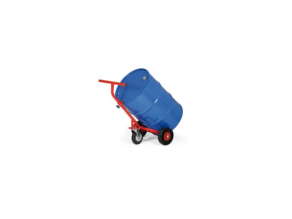 Vozík na sudy s otočným opěrným kolem, které zajišťuje větší bezpečnost a lepší manipulaci. Stavitelná pojistná tyč je uzpůsobena pro různé výšky sudu. Vozík může lehce a jednoduše obsluhovat jedna osoba. Plná kola o průměru 260 mm zajišťují, že vozík je schopen překonávat i drobné překážky, prahy apod. Průměr kola je 86 mm. Samonosný plášť je odolný proti proražení či proti propíchnutí. Kolo o průměru 200 mm je otočné. Konstrukce je svařovaná a je z ocelových trubek a profilů. Lakováno vypalovacím práškovým lakem RAL 3000.