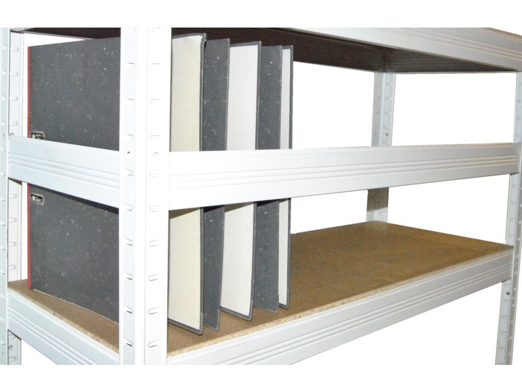 zadní Zábrana slouží proti vypadávání zboží nebo šanonů z regálu. Zábranu lze instalovat v libovolné výšce co 35 mm stejně jako nosníky regálu. V každém prostoru mezi policemi lze instalovat libovolné množství bočních zábran. Zábrana se montuje zasunutím do stojinek, není zapotřebí žádných šroubků ani matic. Jednoduché zabezpečení zboží nebo šanonů na regálových policích.